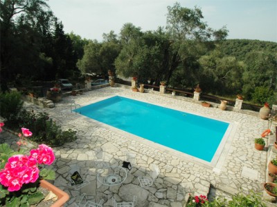 A very comfortable villa with a great pool. We were impressed by the general aspect of the place – surrounded by olive trees and in an elevated position providing fantastic views of the mainland and the sea. (July 2008)