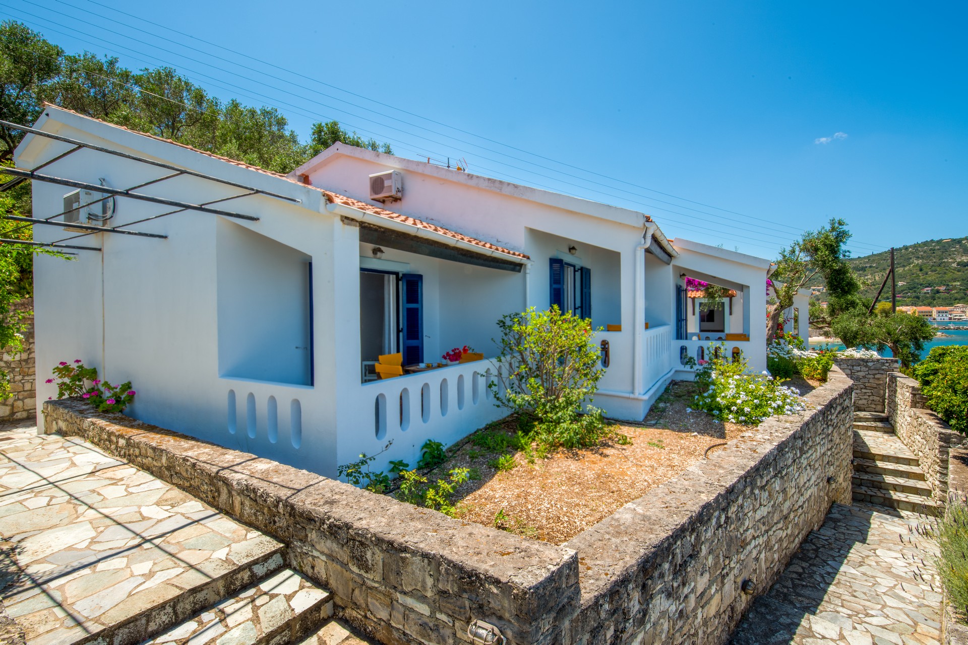 The apartments are well furnished and have a modern look and feel. They all have sea facing balconies towards the Greek mainland and the harbour of Gaios. There are 4 apartments each with 2-3 beds Facilities include: