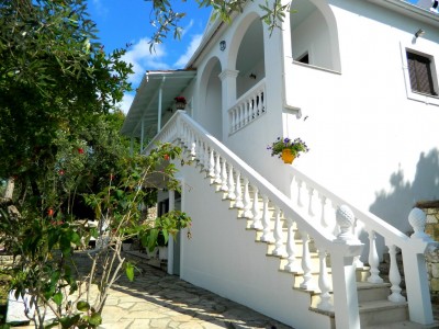 The apartment A in the upper floor has been furnished to offer total comfort. It has a large living room with dining area and kitchen, has 2 bedrooms (double bedroom with bathroom and double bedroom) and a further bathroom. It features a courtyard and terrace. From the terrace you can enjoy the sea to Corfu and the mainland coast.
